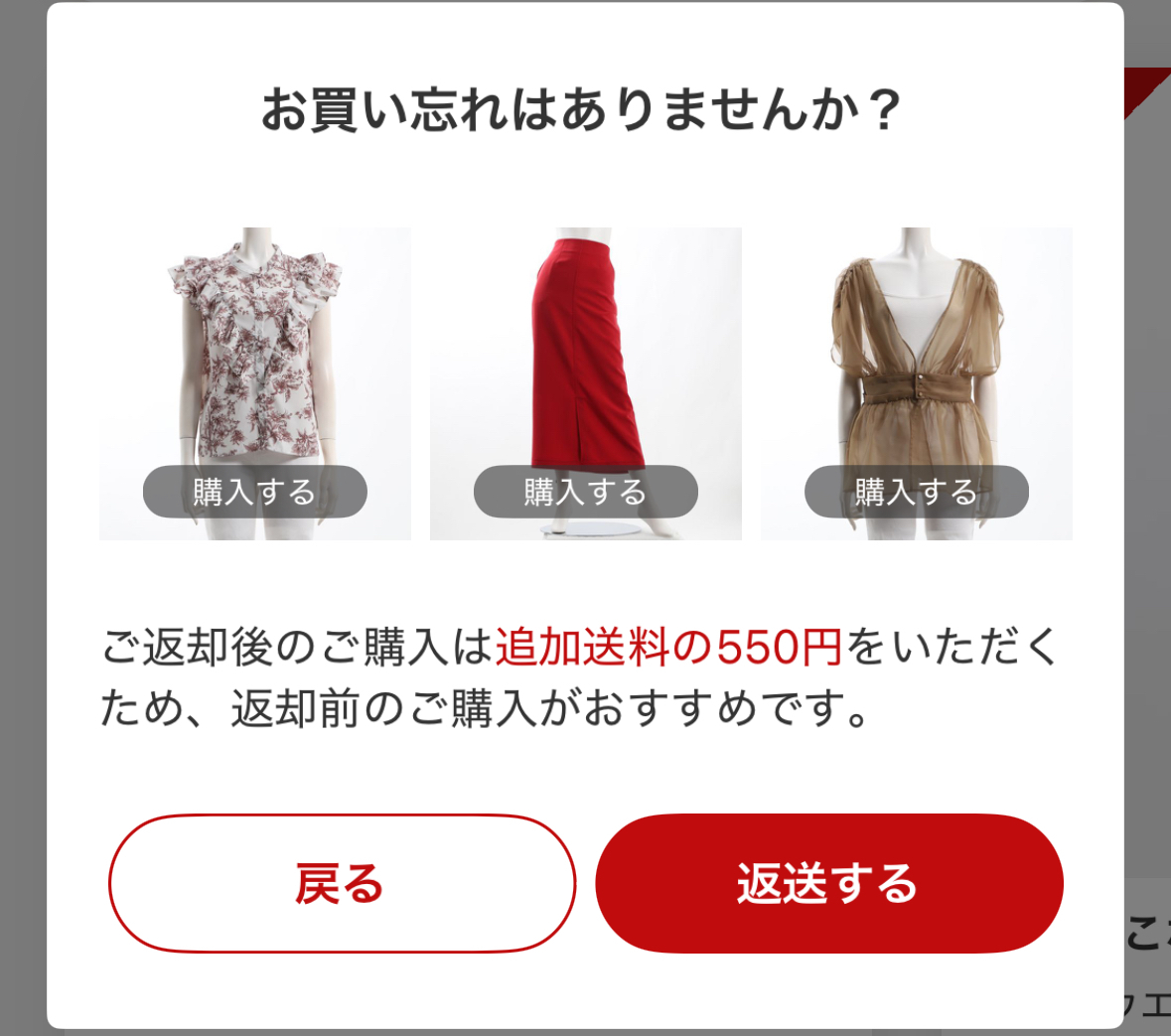 ※ご購入希望のアイテムは必ず返送手続きの前にご購入を完了してください。