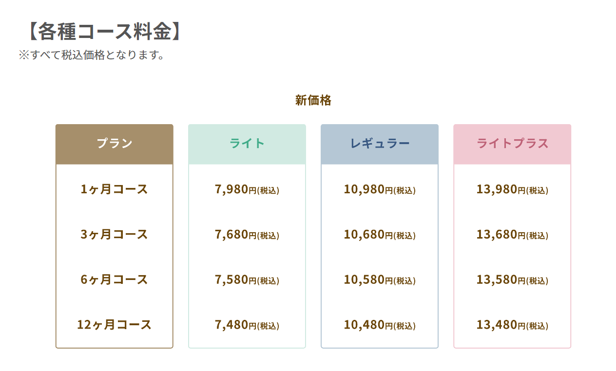 なお、長期でのご契約となる3,6,12ヶ月コースにつきましては、毎月の月額料金がよりお安くなる割引をご用意しております。