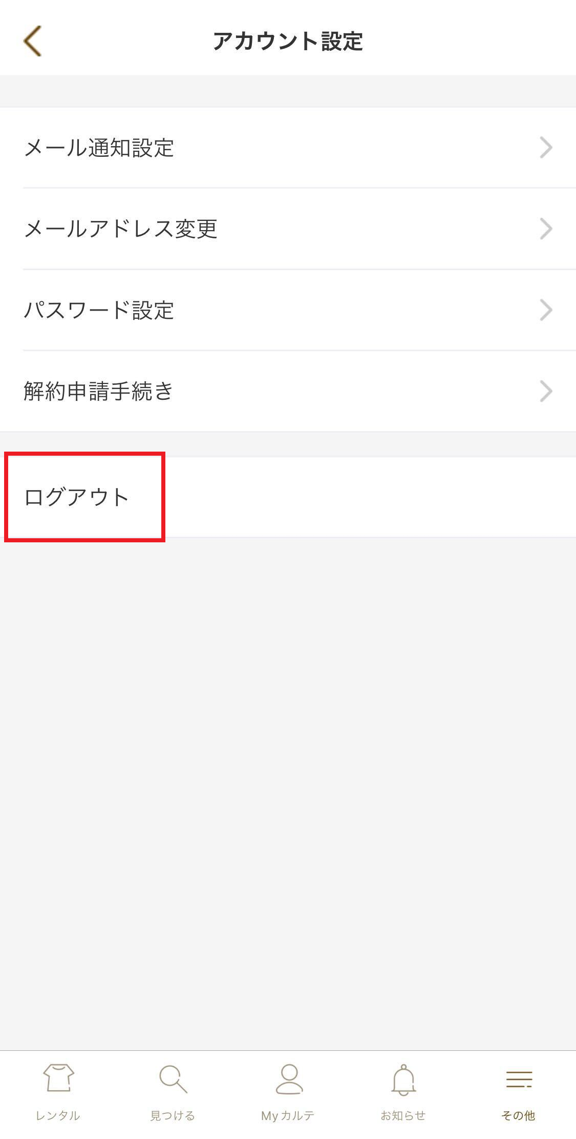 アプリ:ホーム下部のその他 > アカウント設定 > ログアウト