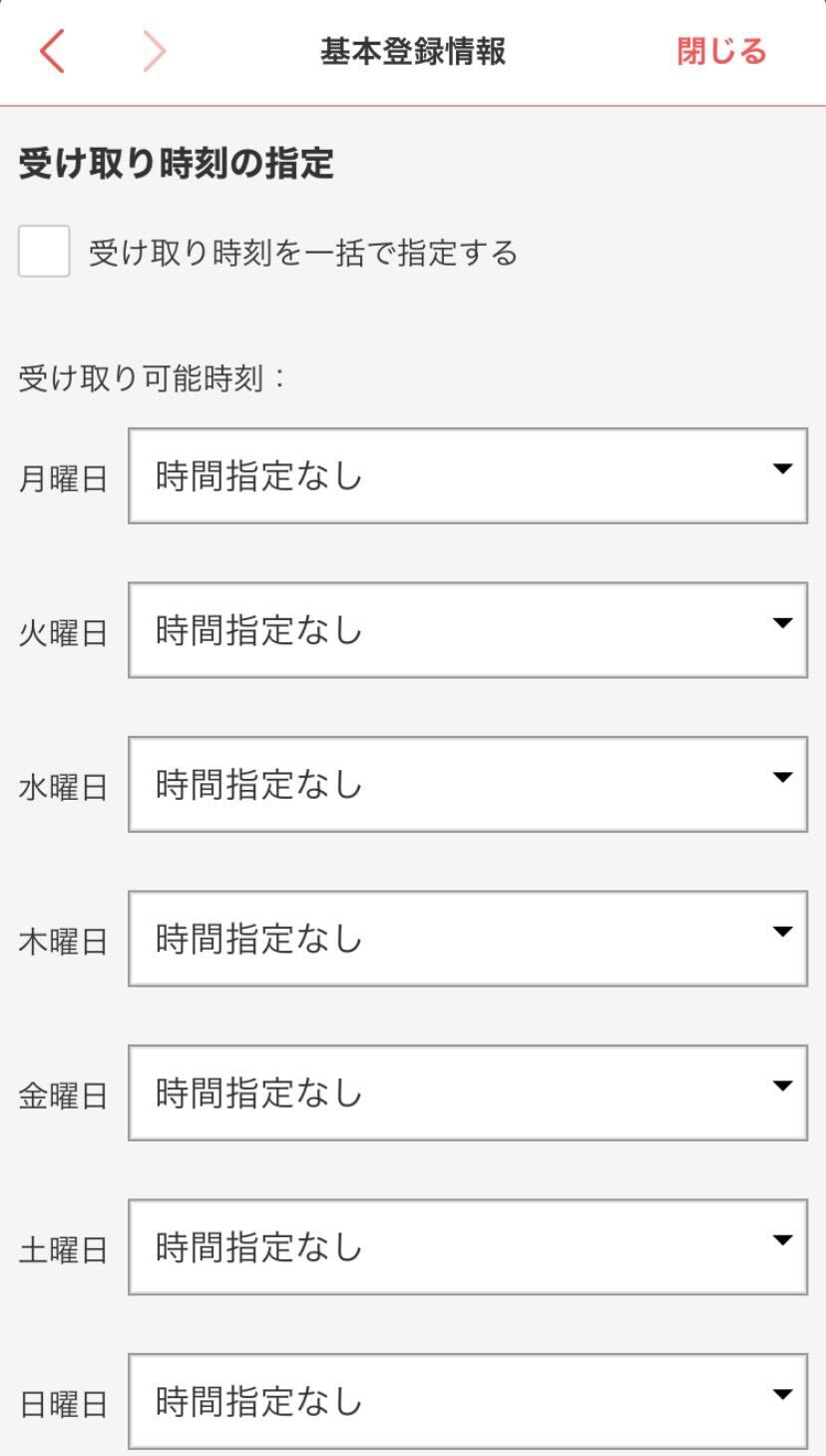 毎回の受け取り希望曜日・時間帯が決まっている方は、あらかじめ登録しておくことをおすすめします。
