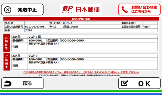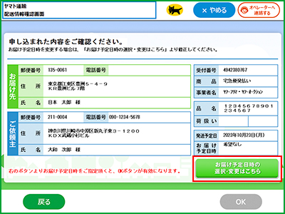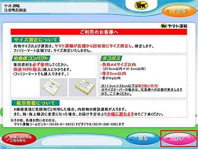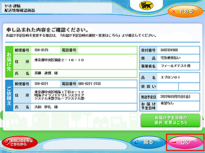 お申し込み内容を確認し、「OK」ボタンを押します。