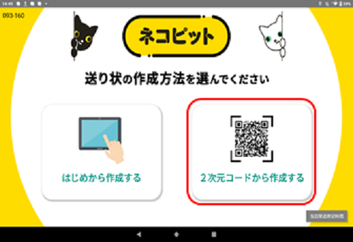 「送り状発行方法選択」画面で「2次元コードをお持ちの方」を選択し案内に沿ってQRコードをかざしてください。