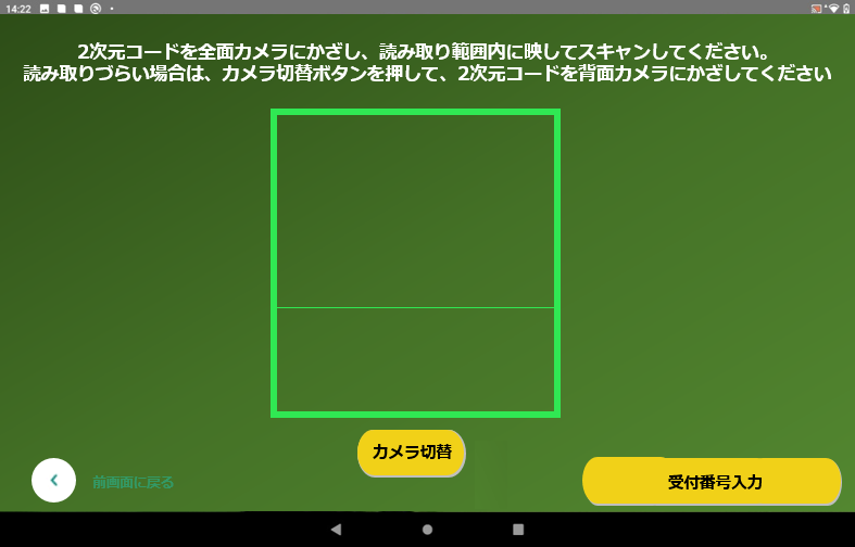 コードリーダーに二次元コードをかざします。