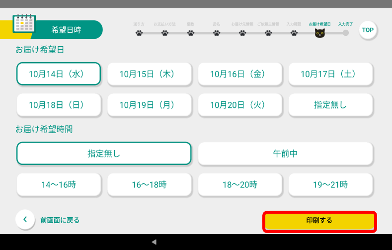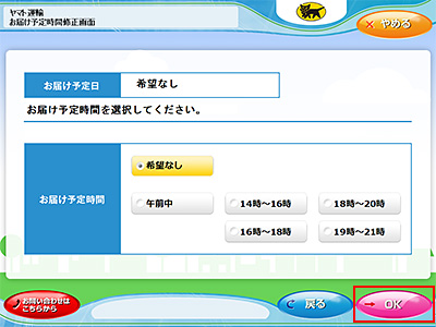 お届け予定時間を選択して、「OK」をタッチします。
