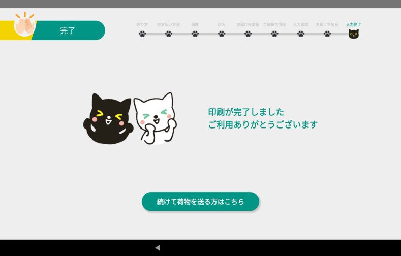 この画面が表示されたら、集荷のお申し込みが完了となります。ご指定の日・時間帯にヤマト運輸のドライバーに荷物を渡してください。