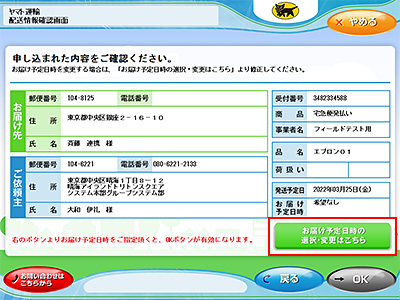 「お届け予定日時の選択・変更はこちら」をタッチします。
