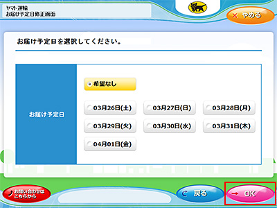 6.お届け予定日を選択して、「OK」をタッチします