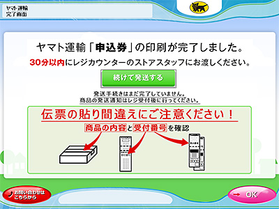 出力後に申込券をレジへ持参し、返送手続きを完了させてください。