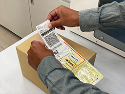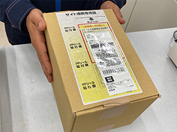 宛名ラベル発行後、返送する荷物に貼り付けます。