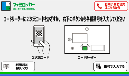ファミロッカー用の返送用二次元コードをご準備いただきましたら、以下の手順にてファミロッカーで操作をしてください。