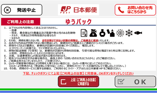 注意事項を確認し、画面最下部中央にある同意ボタンにチェックを入れ、「OK」ボタンを押します。