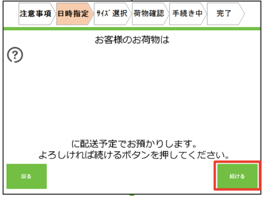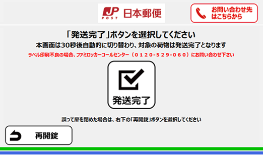 荷物を入れ、扉を閉め、「発送完了」ボタンを押して完了となります。