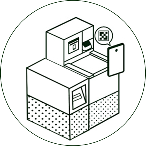 サービスサイト/アプリ上で発行したPUDO用のコードを、操作画面下部の読み取り機でスキャンする。