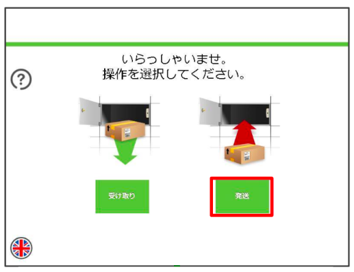 PUDOステーション前面の画面で「発送」をタッチしてください。