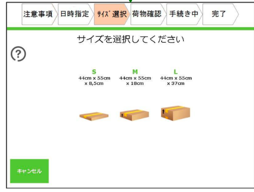 コーディネートを預けるロッカーのサイズを選択する。